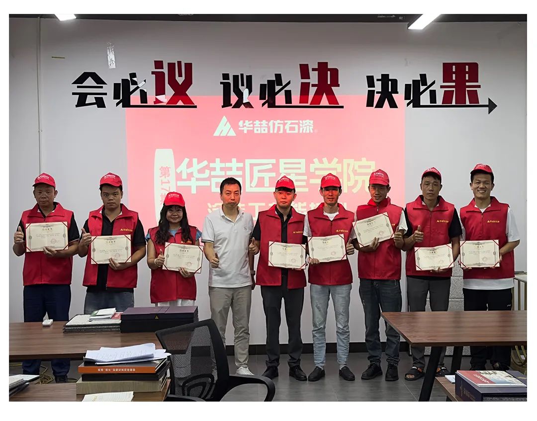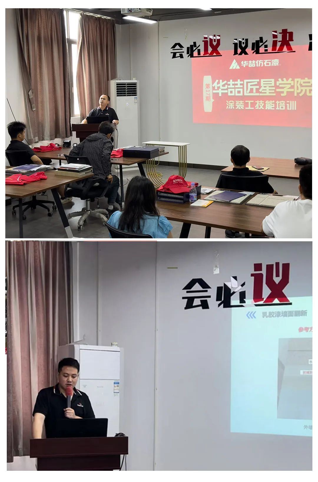 在四月芳菲漸隱,清淺初夏的美好日子里。華喆仿石漆匠星學(xué)院第十七期培訓(xùn)班如期而至,開(kāi)啟了一段充滿活力與激情的涂裝培訓(xùn)旅程。在晨曦的照耀下,本期學(xué)員身著統(tǒng)一的制服,以昂揚(yáng)的姿態(tài)迎接挑戰(zhàn)與學(xué)習(xí)。隨著一聲響亮的口號(hào),培訓(xùn)活動(dòng)在一片熱烈的氣氛中拉開(kāi)序幕,讓我們共同回顧這段旅程中的精彩時(shí)刻。
