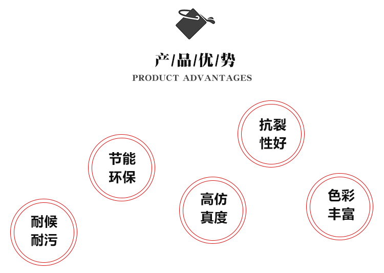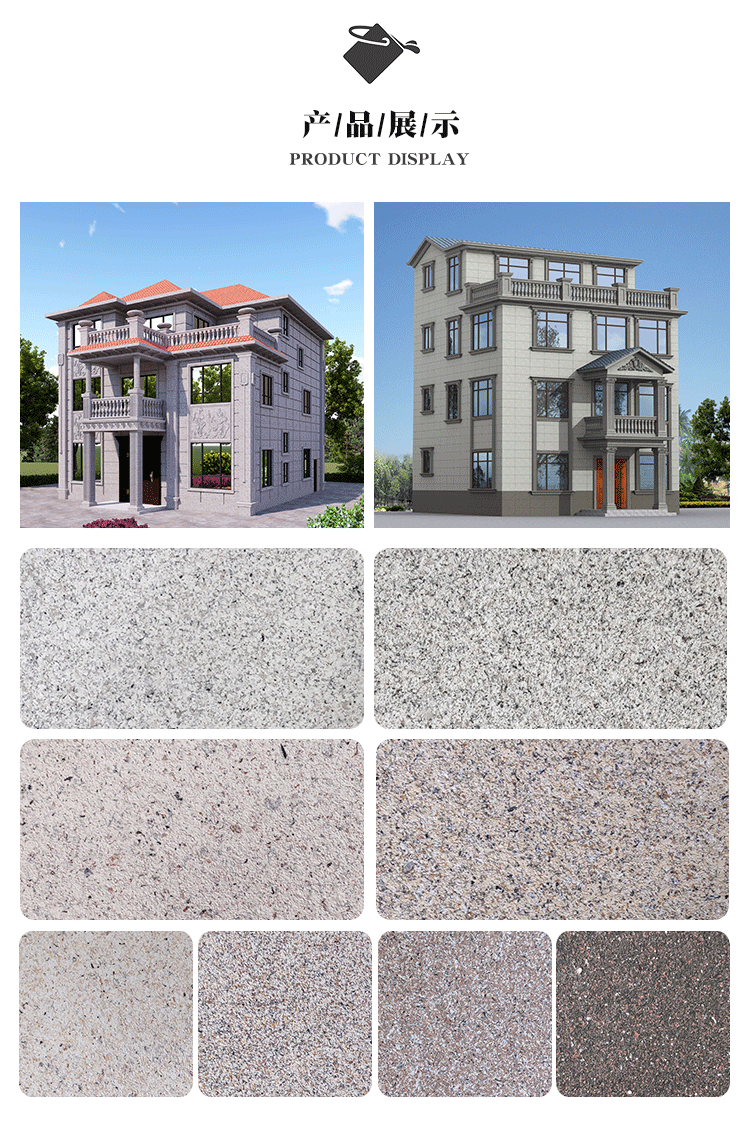 一次噴涂成型,效率高,噴涂?jī)杀樾Ч眩纪垢懈鼜?qiáng),紋理更清晰;噴涂后不會(huì)像巖片漆那樣變形翹邊;施工寬容性高,可避免掉砂、發(fā)花、接茬等施工弊病。