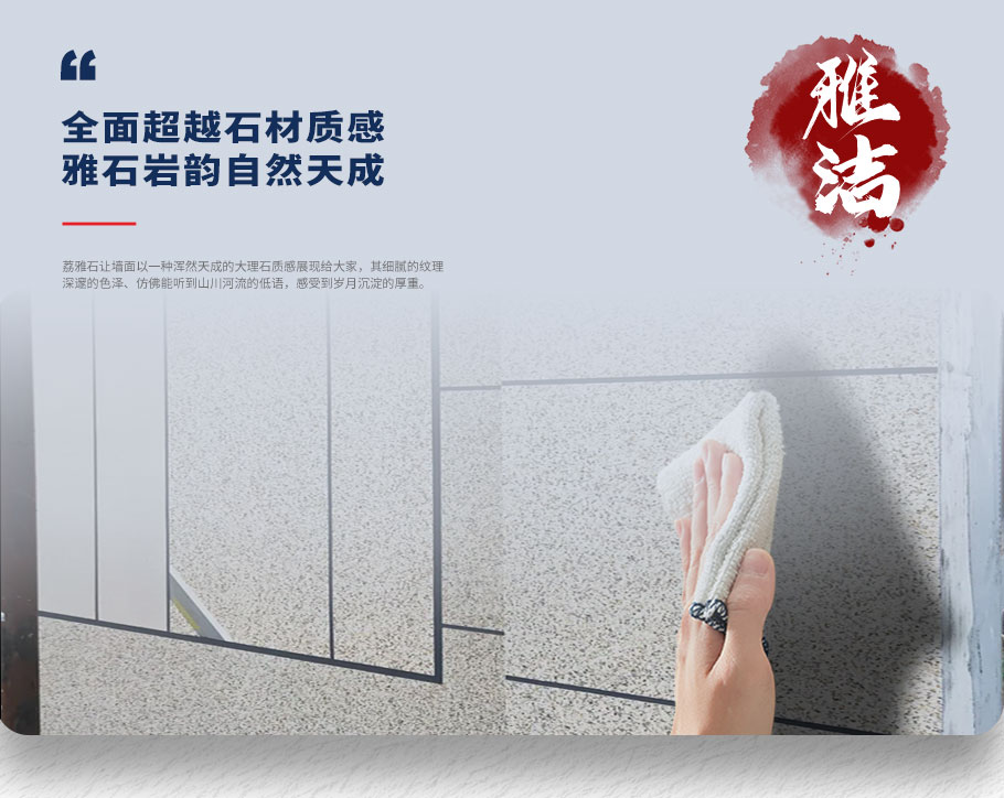 甄選高溫煅燒工藝彩砂搭配高端硅丙乳液,讓每一面墻面都仿佛蘊(yùn)含著大理石的山川韻味。讓家的墻面不僅是視覺(jué)上的享受,讓人凝視間油然而生對(duì)外墻大理石之美的贊嘆;更讓墻面似經(jīng)過(guò)歲月的雕琢,每一處紋理都是自然賦予的靈魂饋贈(zèng)。讓家不再單調(diào),賦予生機(jī)與承載溫馨的家庭篇章。